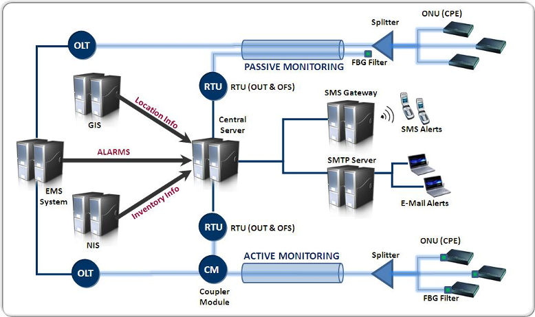 - Fibre Network Monitoring Optical Network Monitoring System (“ONMS”) Monitor In permanence the fibre network in service or out of Service